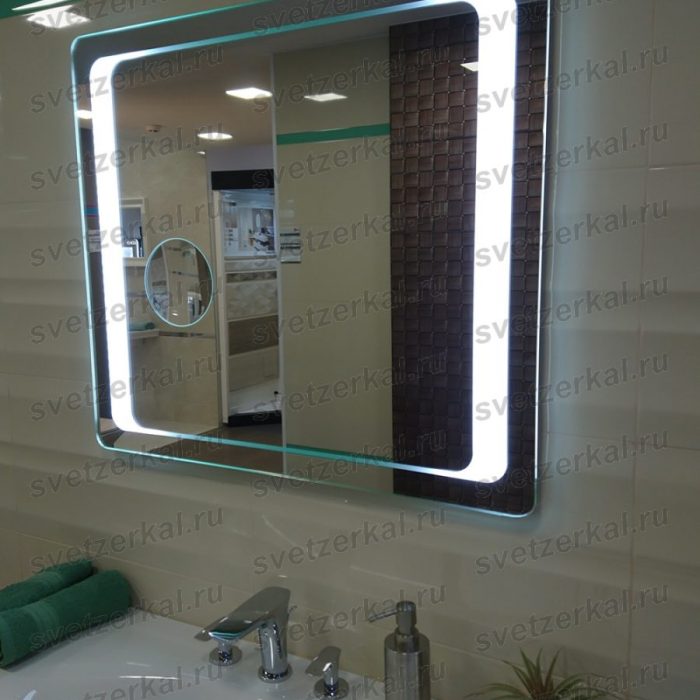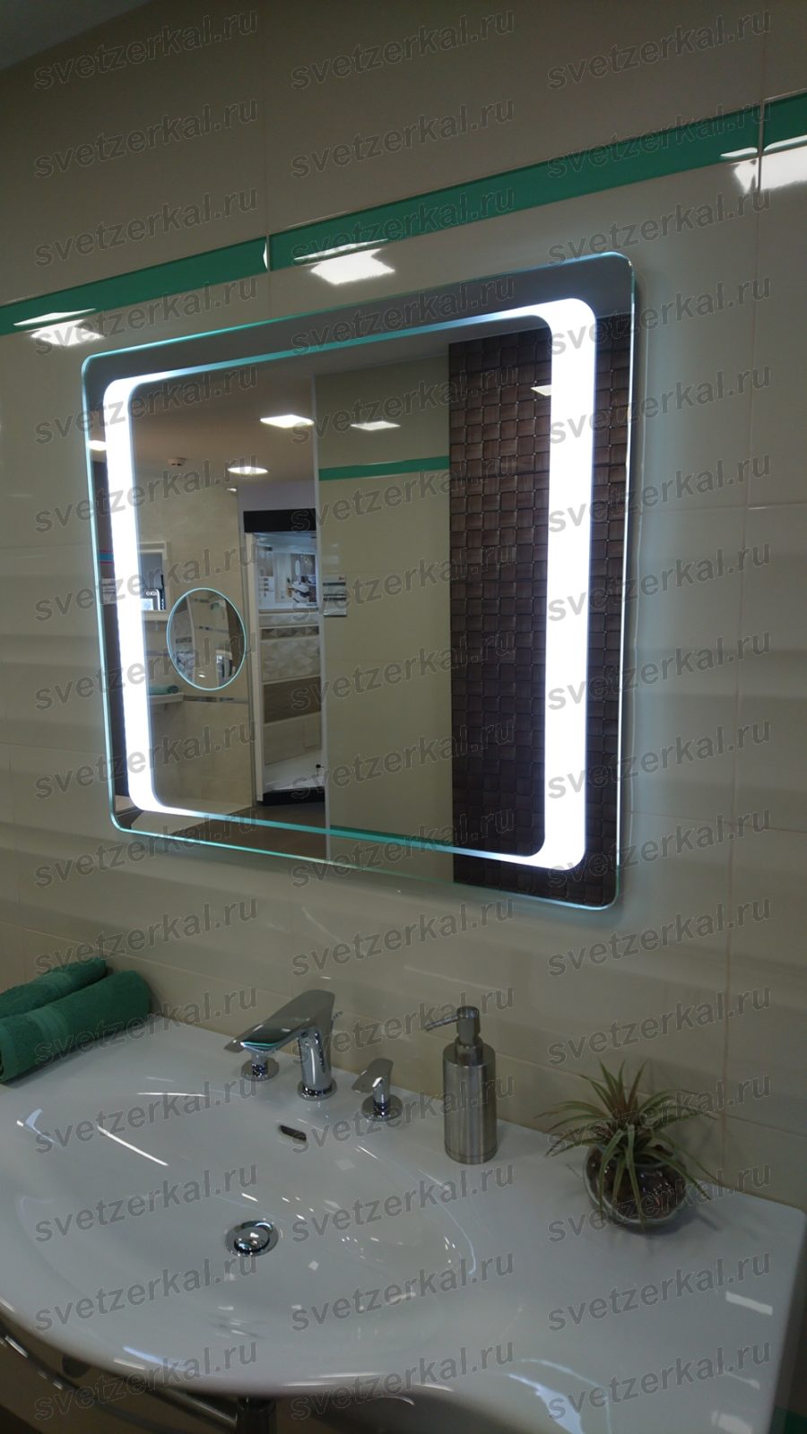 Количество сенсорных кнопок для управления разными опциями – подсветкой, линзой, обогревом или другими зависит от пожеланий заказчиков и функционала зеркала. Оно также выбирается покупателем при оформлении заказа.